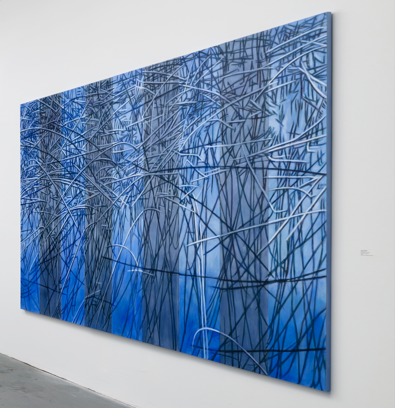 As Above, So Below created for the group exhibition, Uncanny Times at Seidel City, Boulder, explores the concept of parallel worlds and alternate realities through an image of wetlands and their reflections. The work connects our inner emotional landscape with the external, physical world. Wetlands, as one of the most threatened ecosystems, serve as a metaphor for the overlapping crises of society, health, and the environment. Created during the pandemic, the painting reflects the tension between solitude and the need to navigate an uncertain world. It speaks to the complexities of our time and the need for change in how we understand and move through both internal and external landscapes.