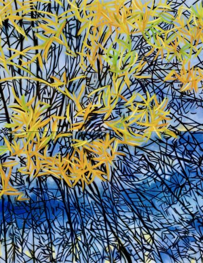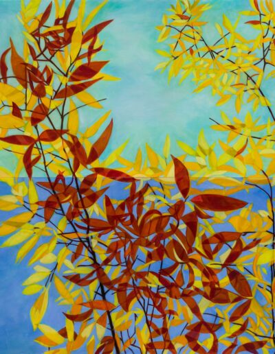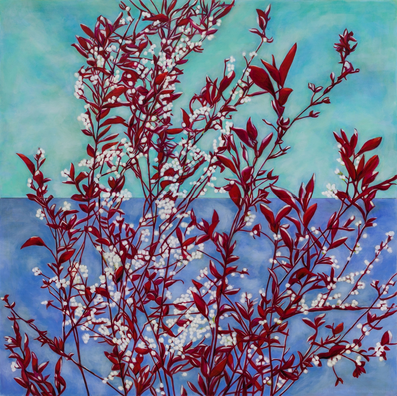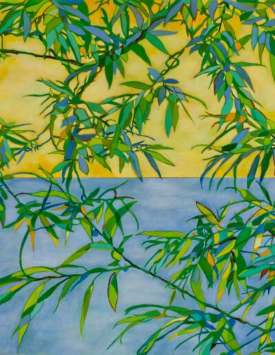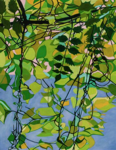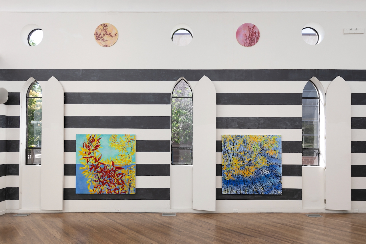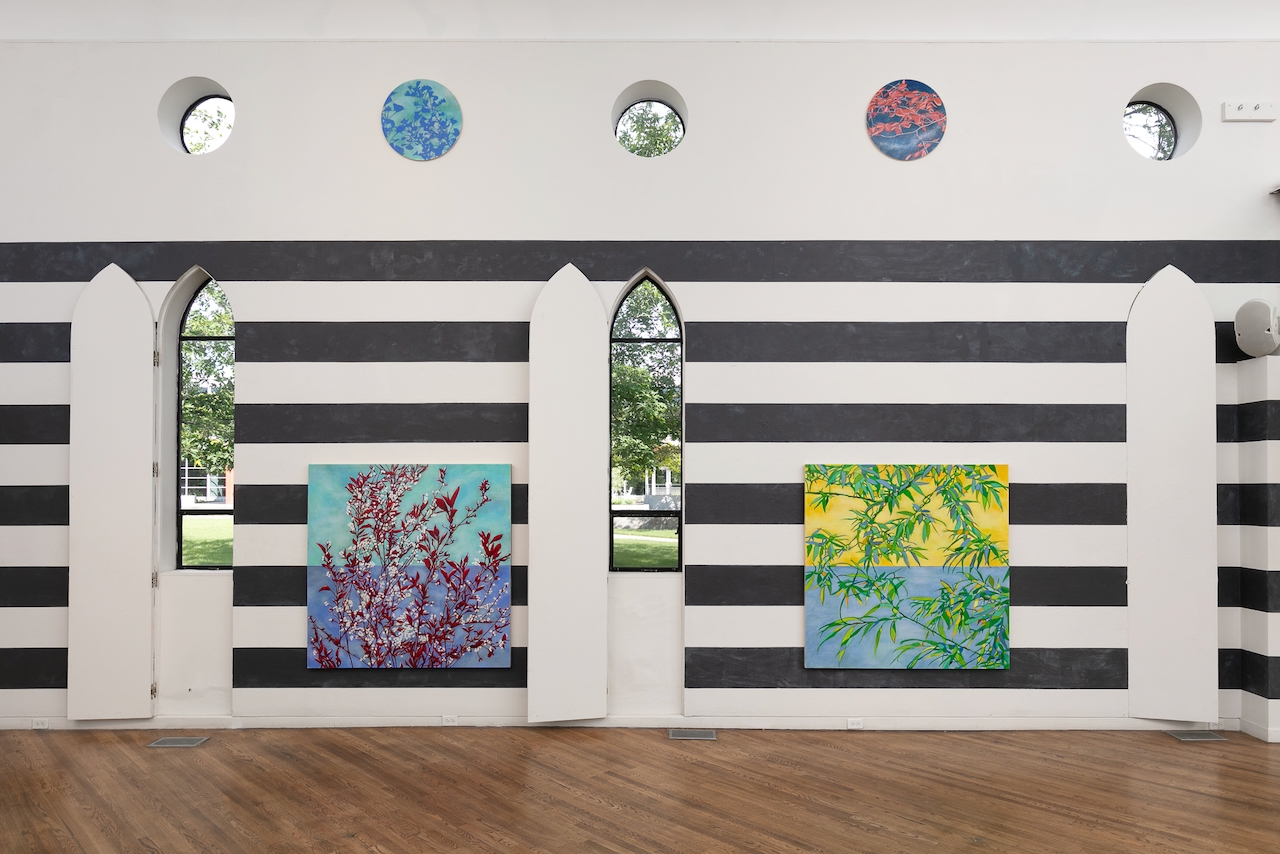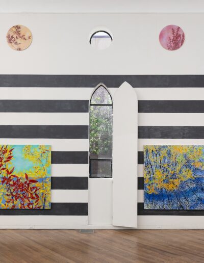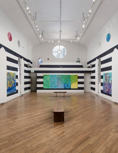 Garden of Eden was an installation and series of seventeen paintings exhibited at EmmanuelGallery, at the University of Colorado in Denver. The installation featured a striped interior inspired by Italian churches. Drawing from the idea of the historical garden, it connects to both ancient landscapes and imagined futures. The series envisions a lush, living world while reflecting on the current environmental crisis. It speaks to a longing for simplicity, beauty, and healing; for respect and protection of the natural world.