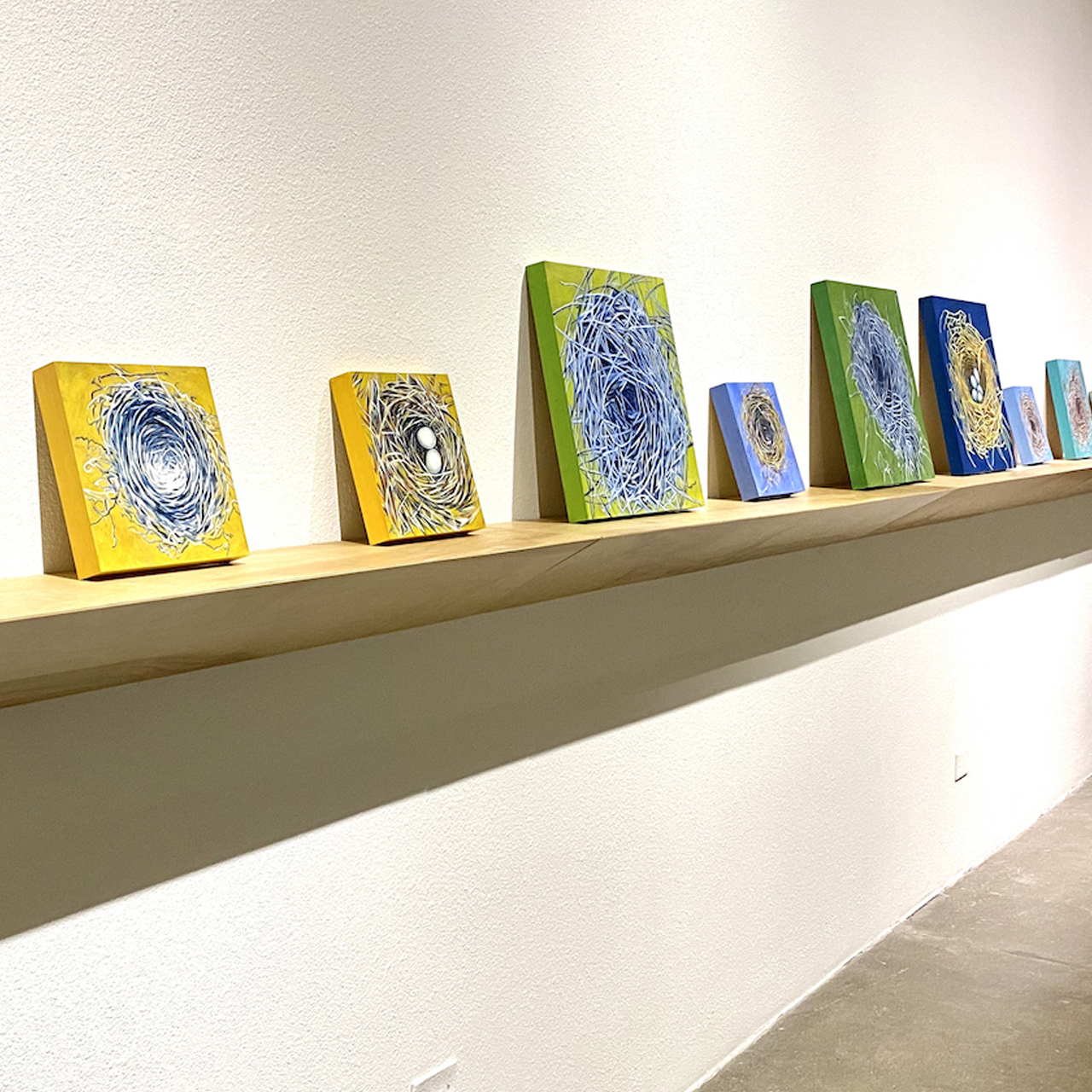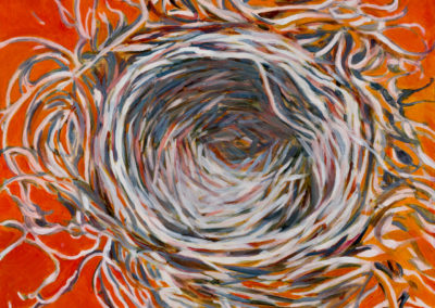 Sheltering is an investigation into the subtle variations within familiar and complex nest forms while considering the broader implications of sheltering itself. In its many configurations, sheltering serves as a metaphor for safety, renewal, and hope- just as the nest symbolizes a place of temporary refuge in this period of instability and isolation during the pandemic. Exhibited at Robischon Gallery, Denver, Colorado, in January 2021.